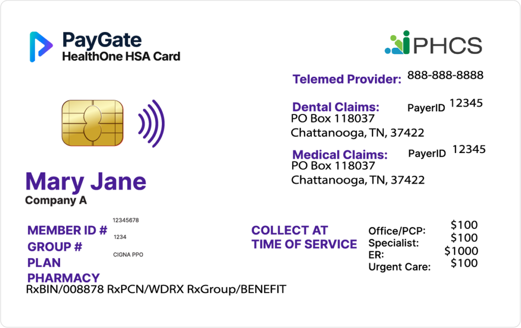 Our industry-leading all-in-one HSA and Medical Insurance Card used by Employees all over the United States.